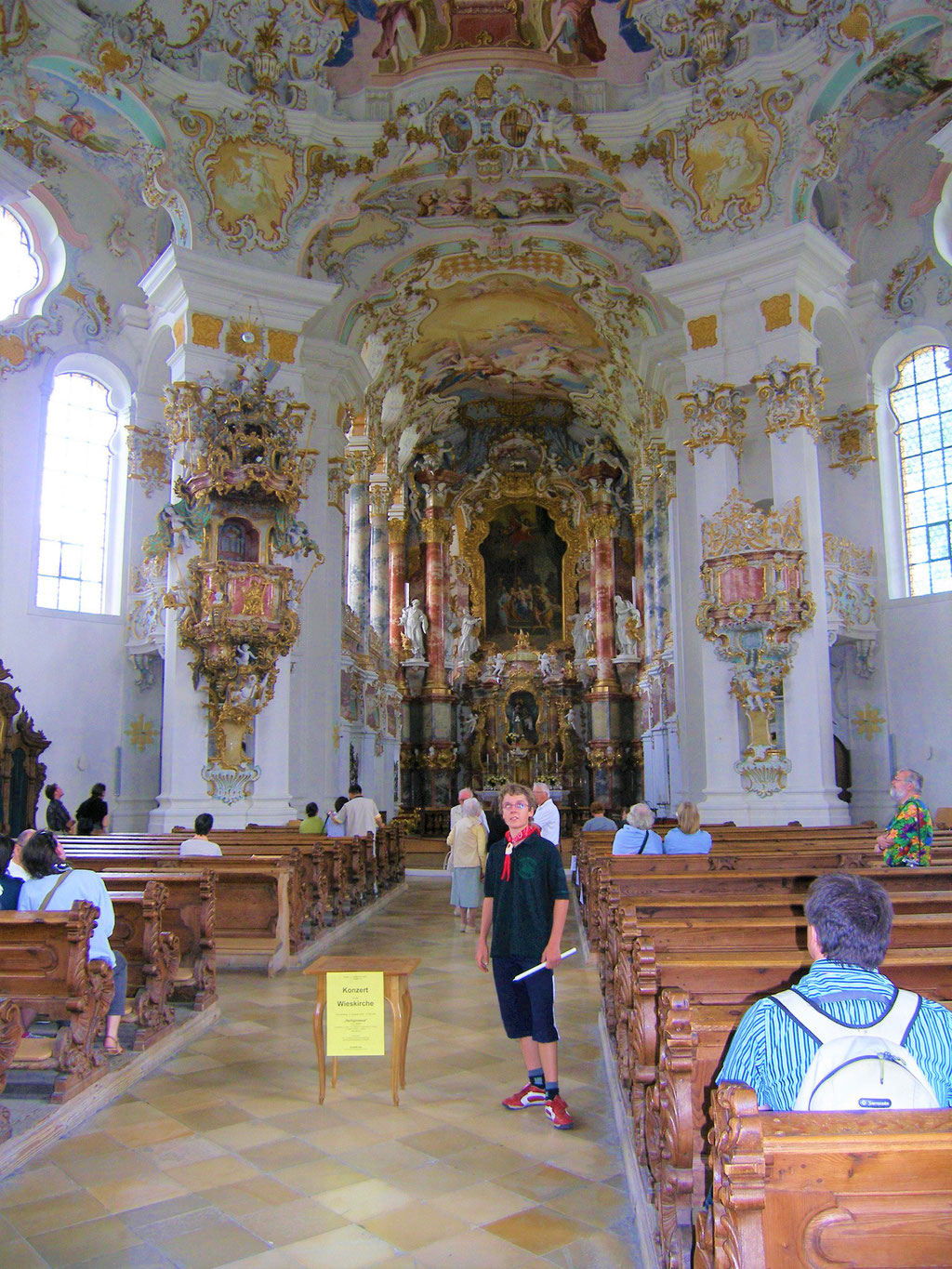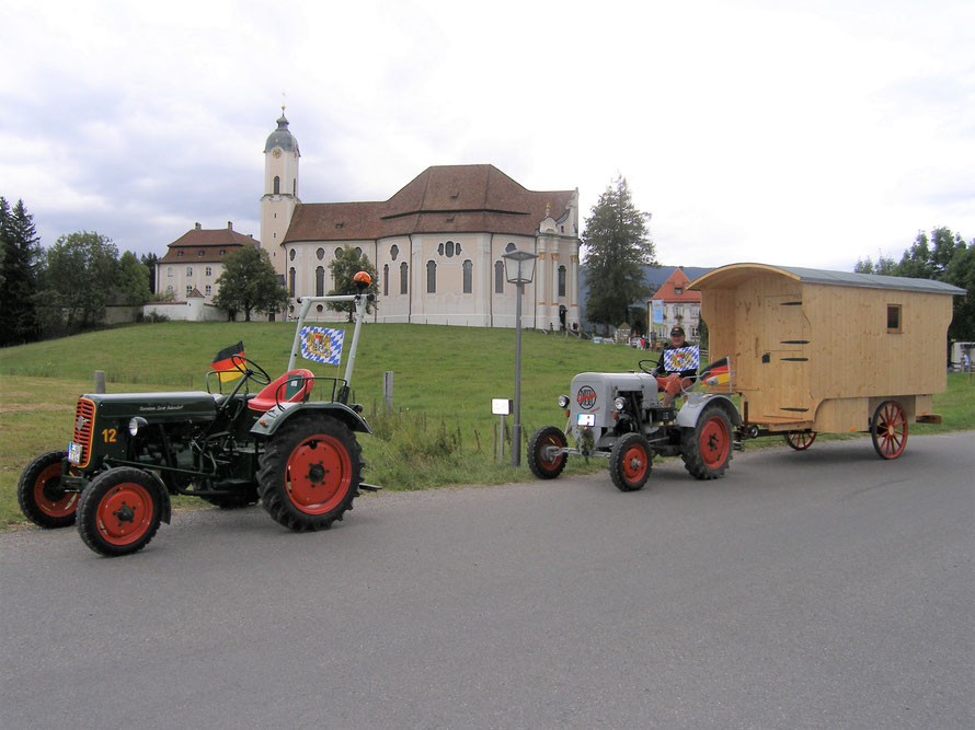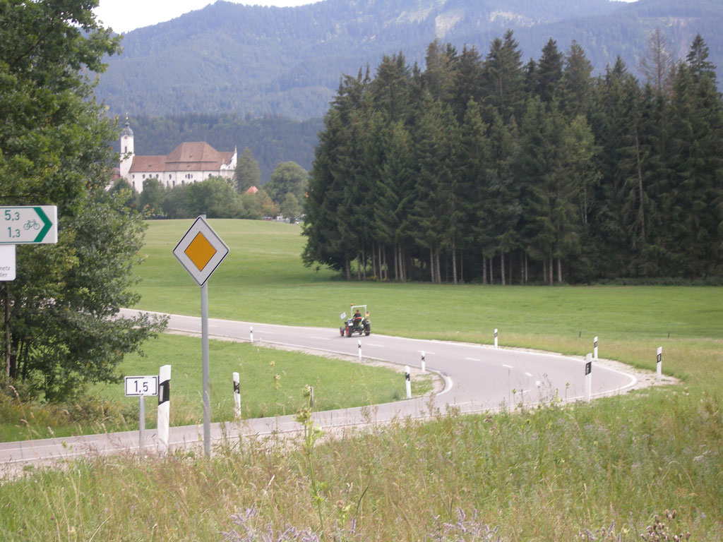 Über Lechbruck und Steingaden machten wir uns auf den Weg zur Wieskirche. Wir suchten wieder eine Nebenstrecke heraus und in den vielen Dörfern wurde uns zugewunken und ab und zu hatte auch einer Zeit für eine kleine Unterhaltung bzw. für eine Auskunft über die kommenden Wege.