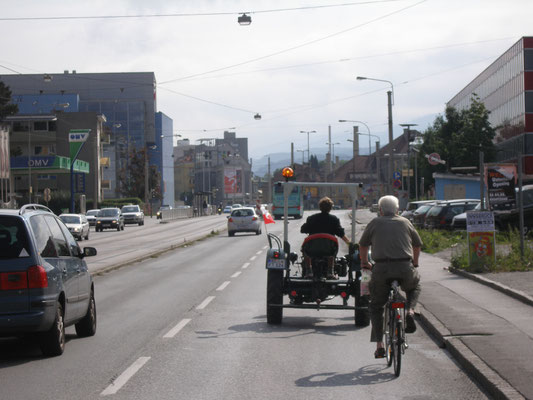 Keinen Kilometer hat es gedauert und der Hela streikte. Ich wurde nicht sofort erreicht, an der Kreuzung in Biberach kam ein junger Mann Florian zum Schieben zu Hilfe und Mama Elfi wurde ebenfalls übers Handy verständigt.