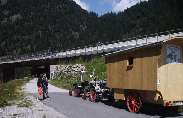 Hier haben wir den „Brenner Willi“ getroffen, ein Eicher Puma Fahrer, der mit seinem Weinbergschlepper rund um den Brenner die Berge befährt und uns aufgetragen hat, bei unserer Rückfahrt