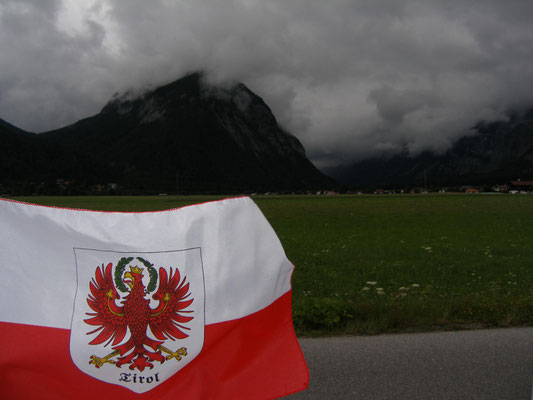 Richtung Innsbruck. Immer noch trockenes Wetter, inzwischen hat auch Florian wieder seinen Glauben an den Hela gewonnen, führte uns durch das Inntal, vorbei an der Martinswand.