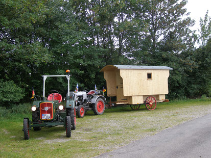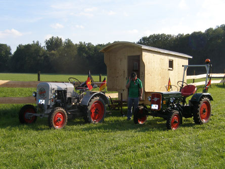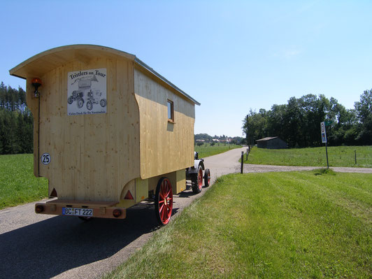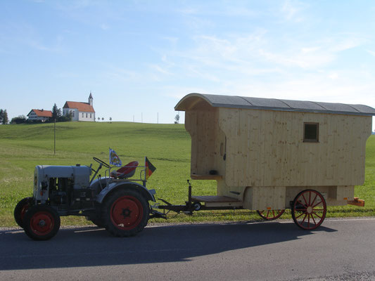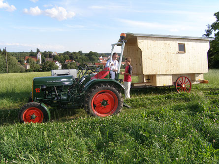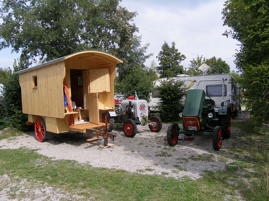 Nachdem wir noch Herrn Braunhofer und Seppl, der war begeistert von unseren Traktoren, begrüßt und noch einen Nachttrunk organisiert hatten, richtete Florian unseren Schäferwagen für die Nacht