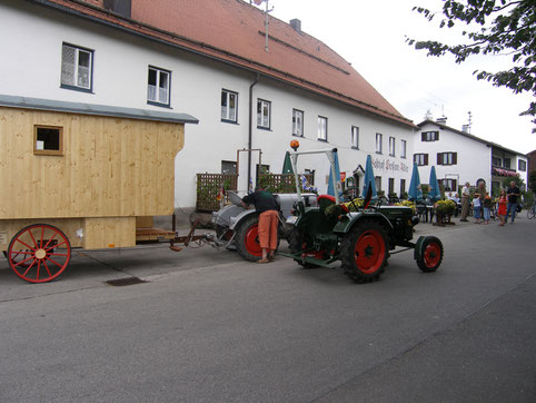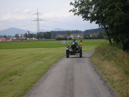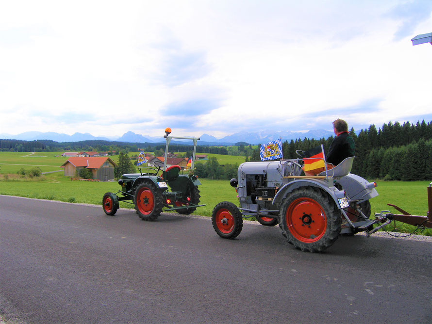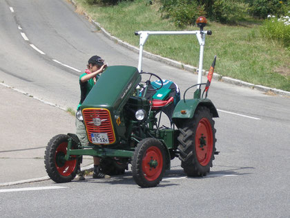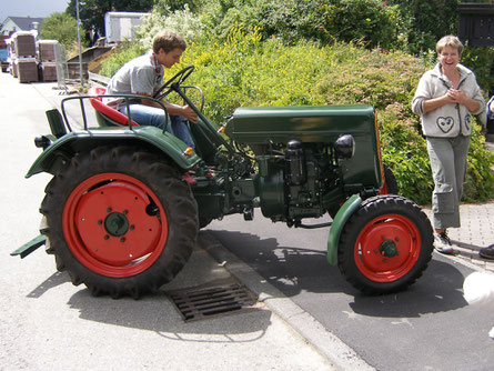 Starteten, nein – der Eicher streikte und wollte nicht anspringen (hatte zu wenig Saft in der Batterie). Nachdem wir unser „Ölsoicherle“ abgekoppelt hatten, sprang er auch gleich beim „Anfahren bergabwärts“ an und konnte wieder vor Wendelin gespannt werden.