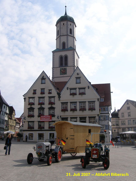 Mit einer Marktplatzrunde in Biberach an der Riss verabschiedeten wir uns von unserer Heimat und gingen die ersten Kilometer an.