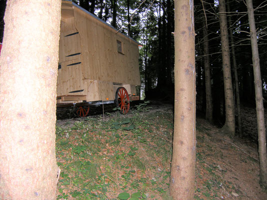 Nachdem unser Übernachtungsplatz ausgesucht war, holten wir unseren Schäferwagen aus Treherz, wir hatten diesen zuhause schon „Wendelin“ getauft.