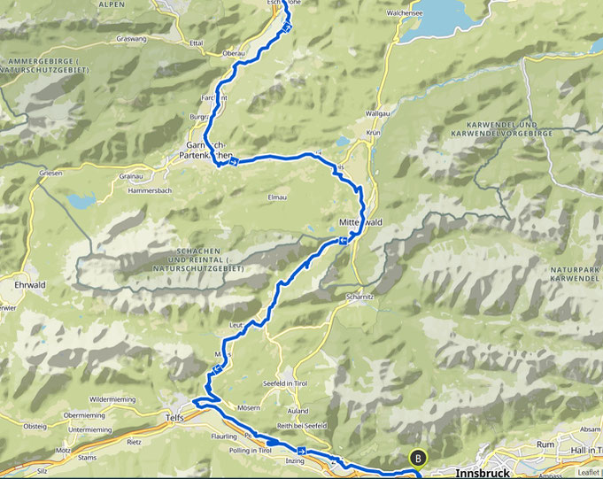 Strecke Mittenwald – Seefeld .