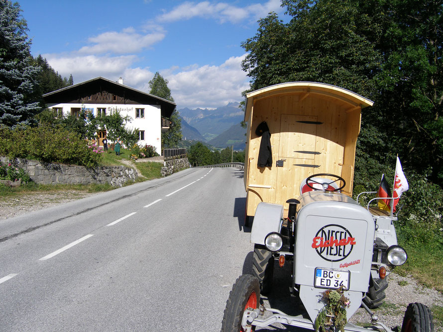 Mit unserem ED 16 sind wir nach Innerratschings zur Pizzeria Sepp gefahren, der sofort den Eicher unter