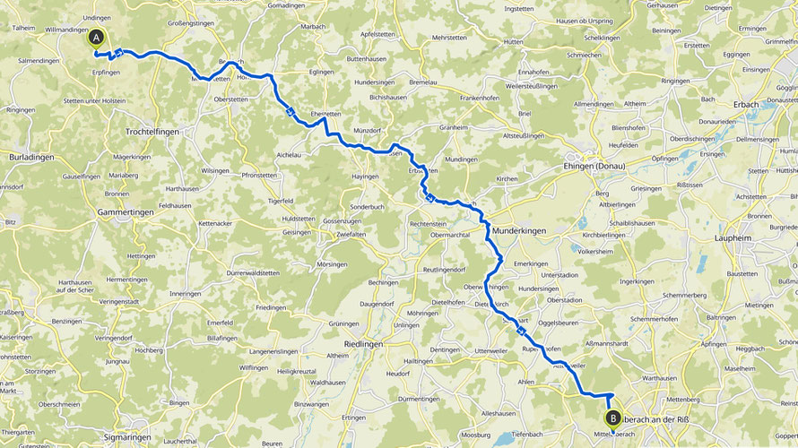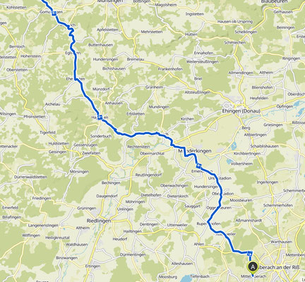 Weiter über Ehestetten - Anhausen - Erbstetten - Lauterach nach Untermarchtal, wo wir vor über einer Woche mit Bierer Schorsch gestartet sind.