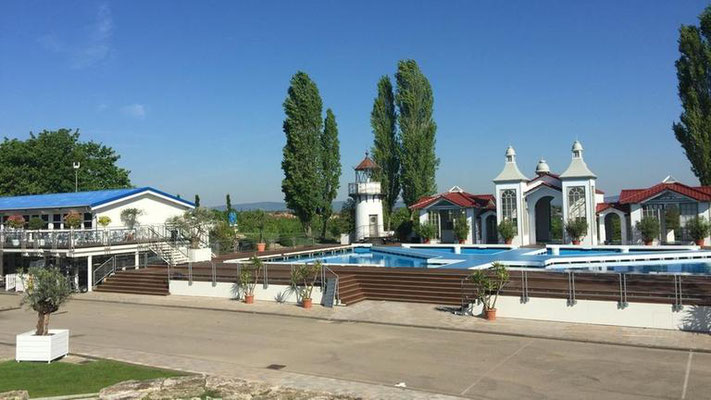 Die Camping - Anlage war voll besetzt, so dass wir auf einem Parkplatz außerhalb der Anlage mit Benutzung der Sanitäranlagen übernachten durften.