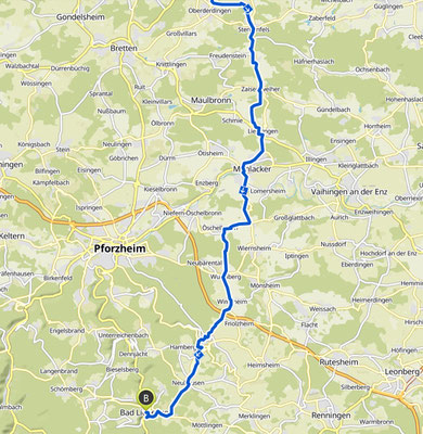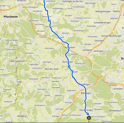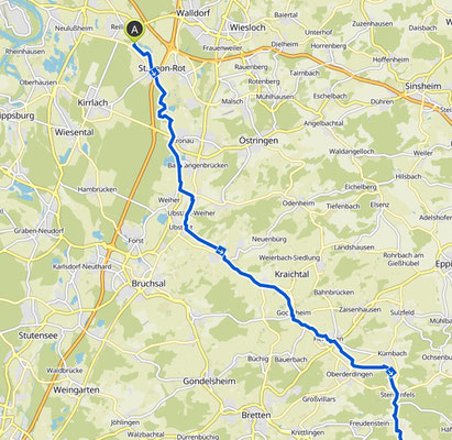 Von der Campinganlage fuhren wir über Kronau - Ubstadt-Weiher - Unteröwisheim - Münzesheim - Gochsheim - Flehingen nach Sternenfels.