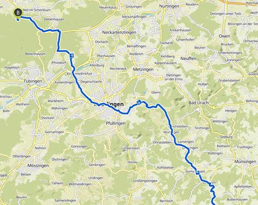 über Hayingen - Gomadingen - St. Johann - Eningen nach Reutlingen