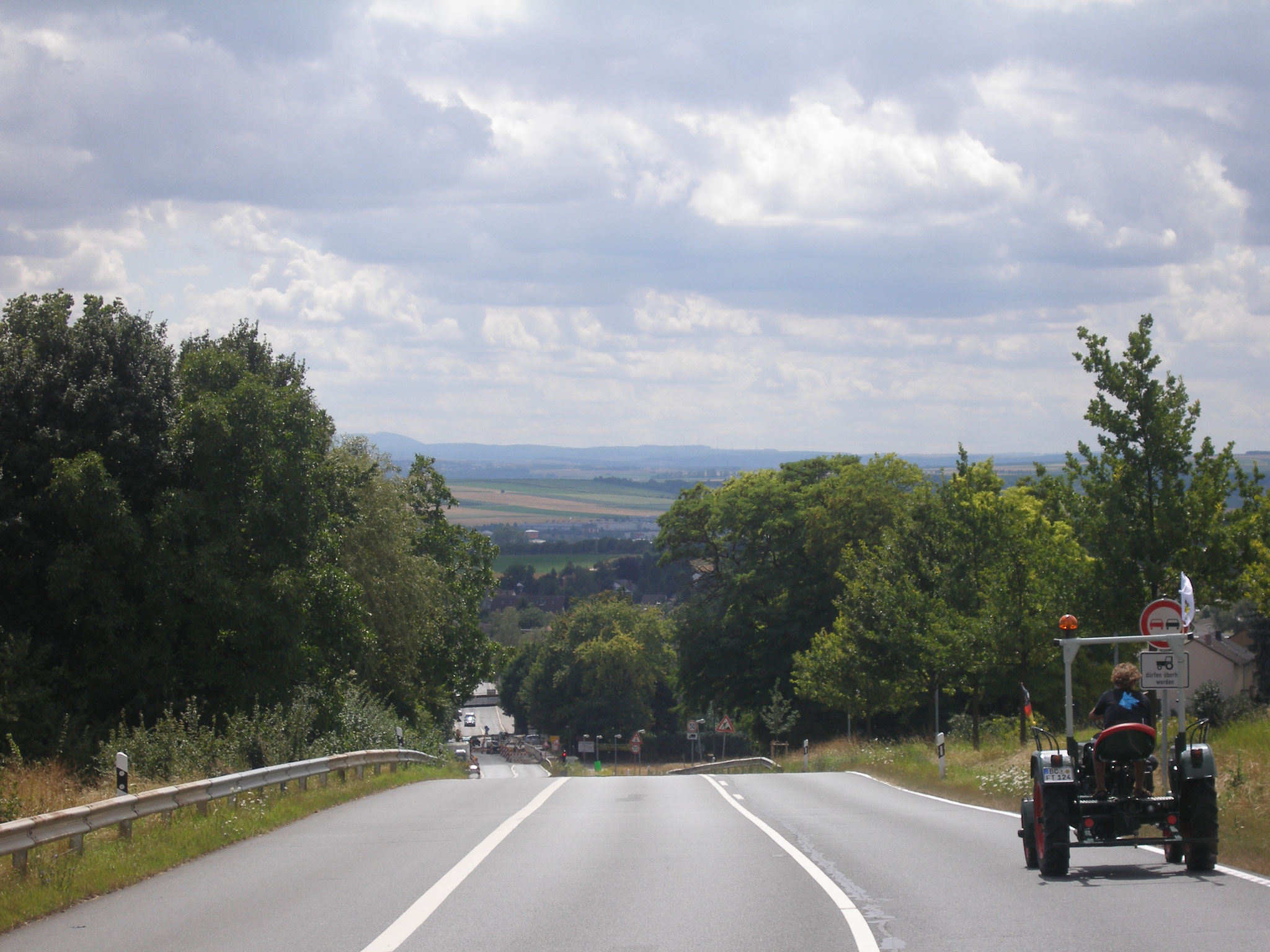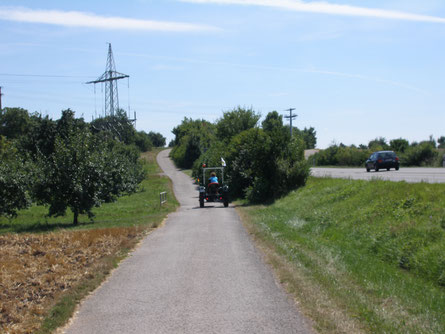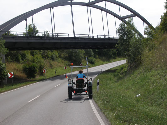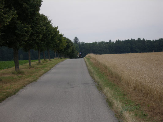 Florian hat, wie schon die Tage zuvor, immer wenn es möglich war die Feldwege neben den Bundes- und Landstraßen genommen - so haben wir immer wieder Anerkennung auch bei den Brummifahrern bekommen.