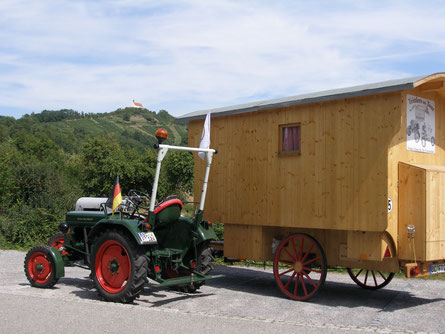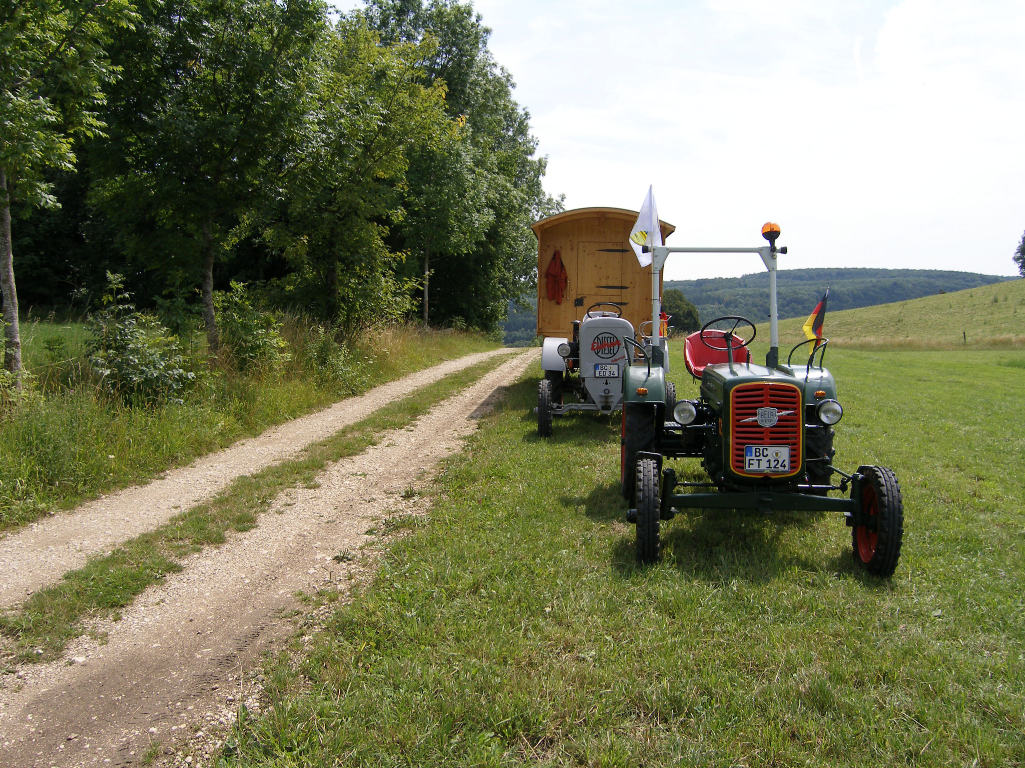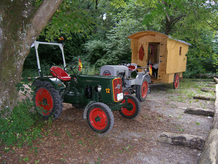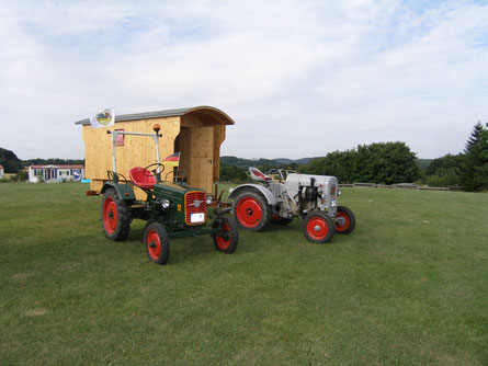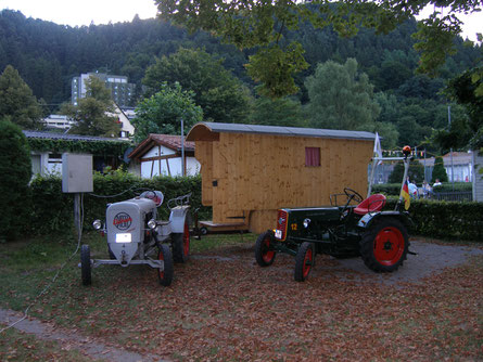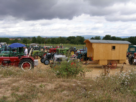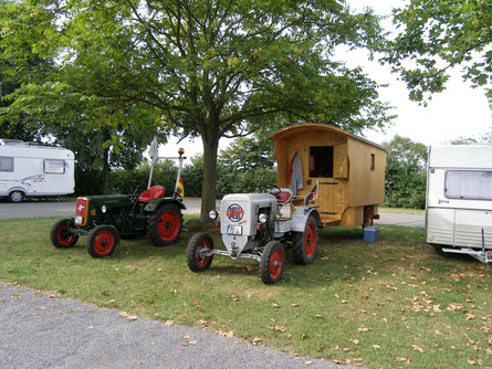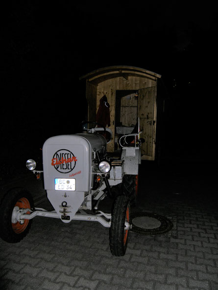 Früh am Sonntagmorgen aufgestanden haben wir gemeinsam gefrühstückt und unseren Wendelin (Schäferwagen) gepackt und mit unserem ED 16 auf den Acker für das Treffen gefahren und aufgestellt.