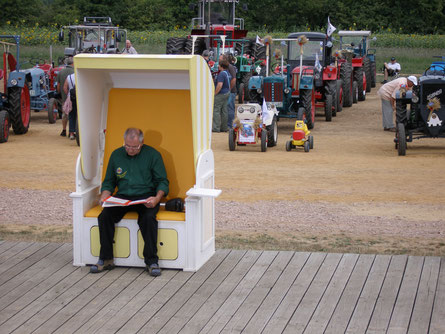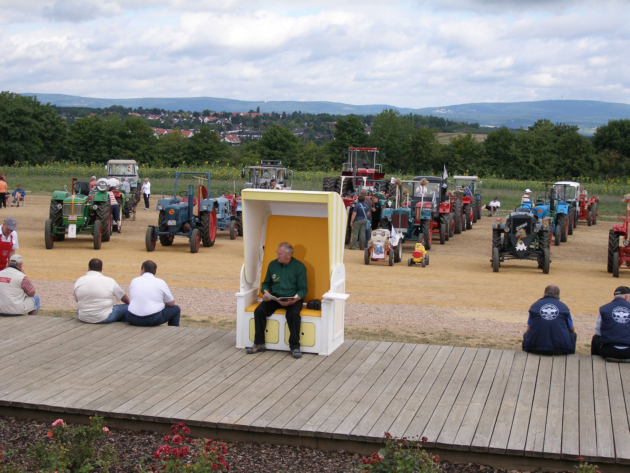 Irgendwie sind wir aufgefordert worden, uns zum Traktortreffen im Fersehgarten anzumelden.