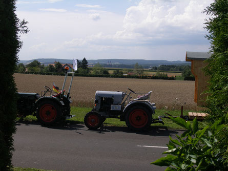 Alle anderen Traktoren wurden auf einem nahegelegen Acker in Reih und Glied bereits aufgestellt - außer denjenigen, die noch wie z.B. unser ED 16 einen Anhänger ziehen mussten.