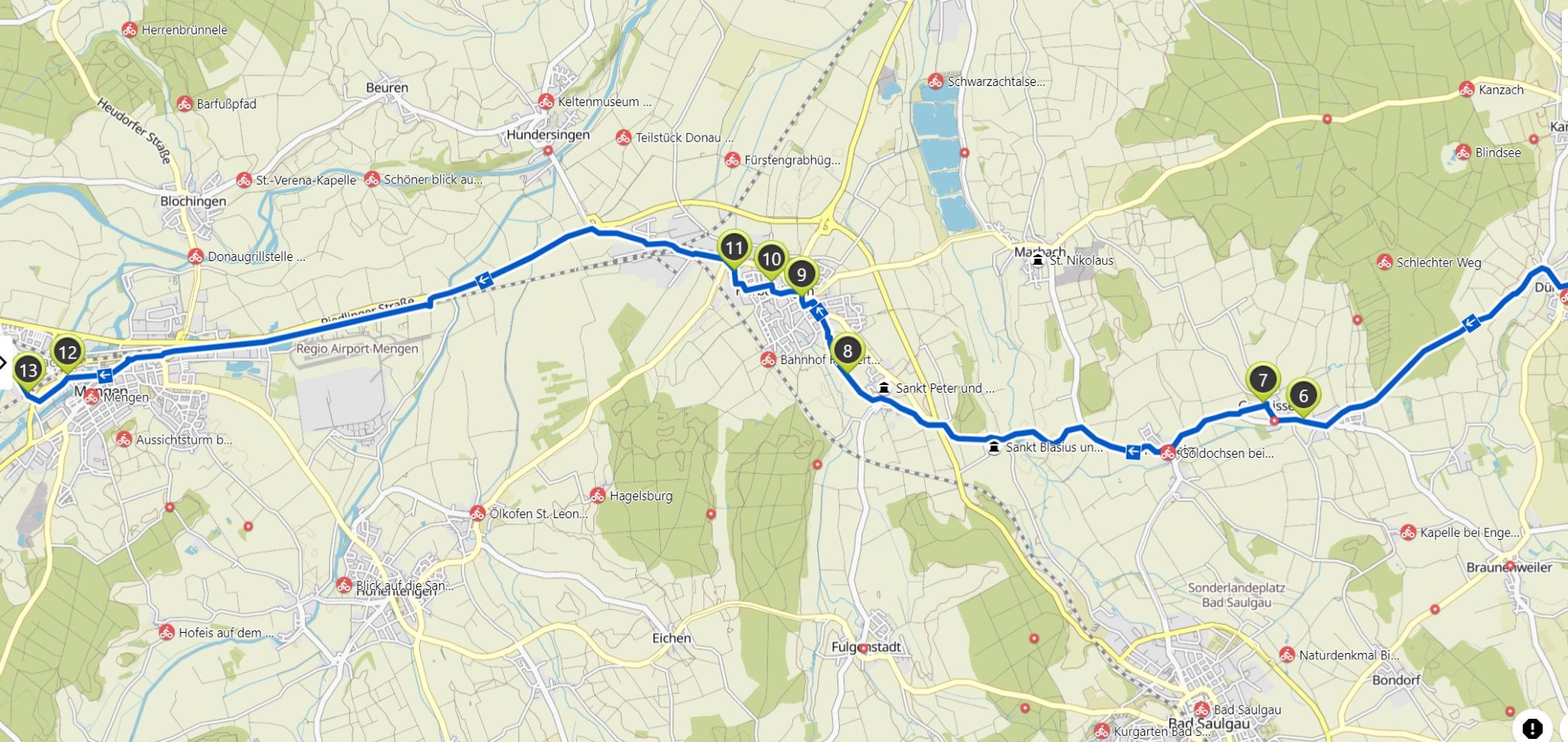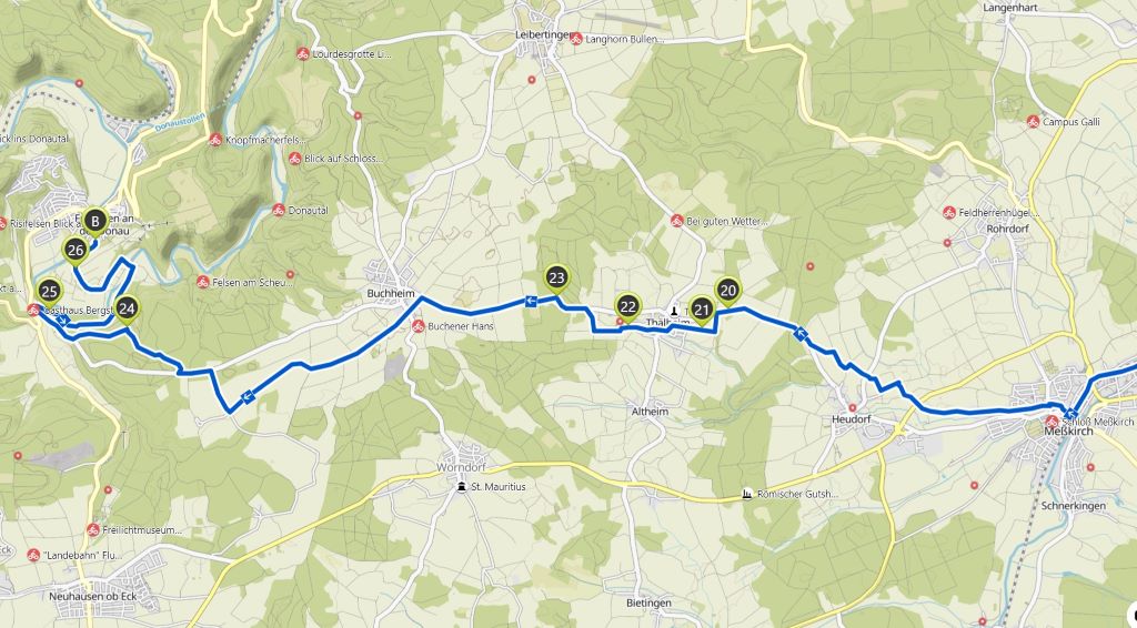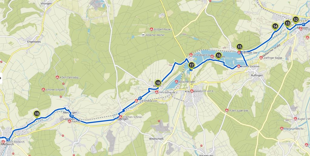 Weiter nach Ablach - Göggingen - Menningen - Meßkirch - Heudorf - Thalheim und Buchheim erreichten wir Bergsteig.